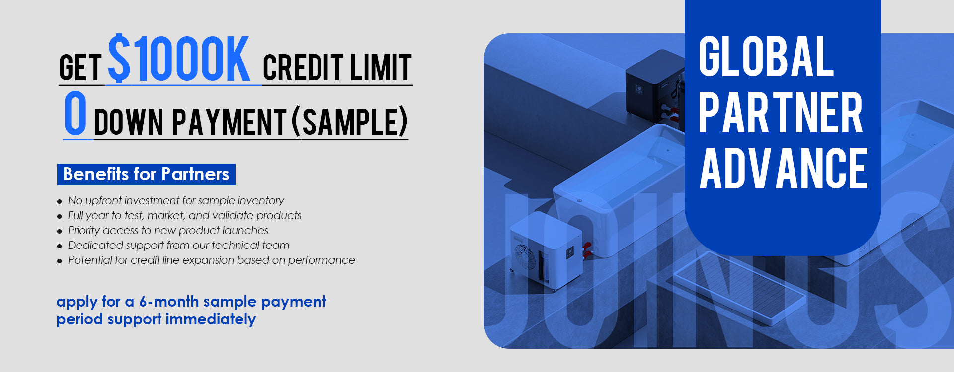 Access up to $200,000 in sample inventory with 12-month payment terms. Designed for distributors who believe in testing before investing.